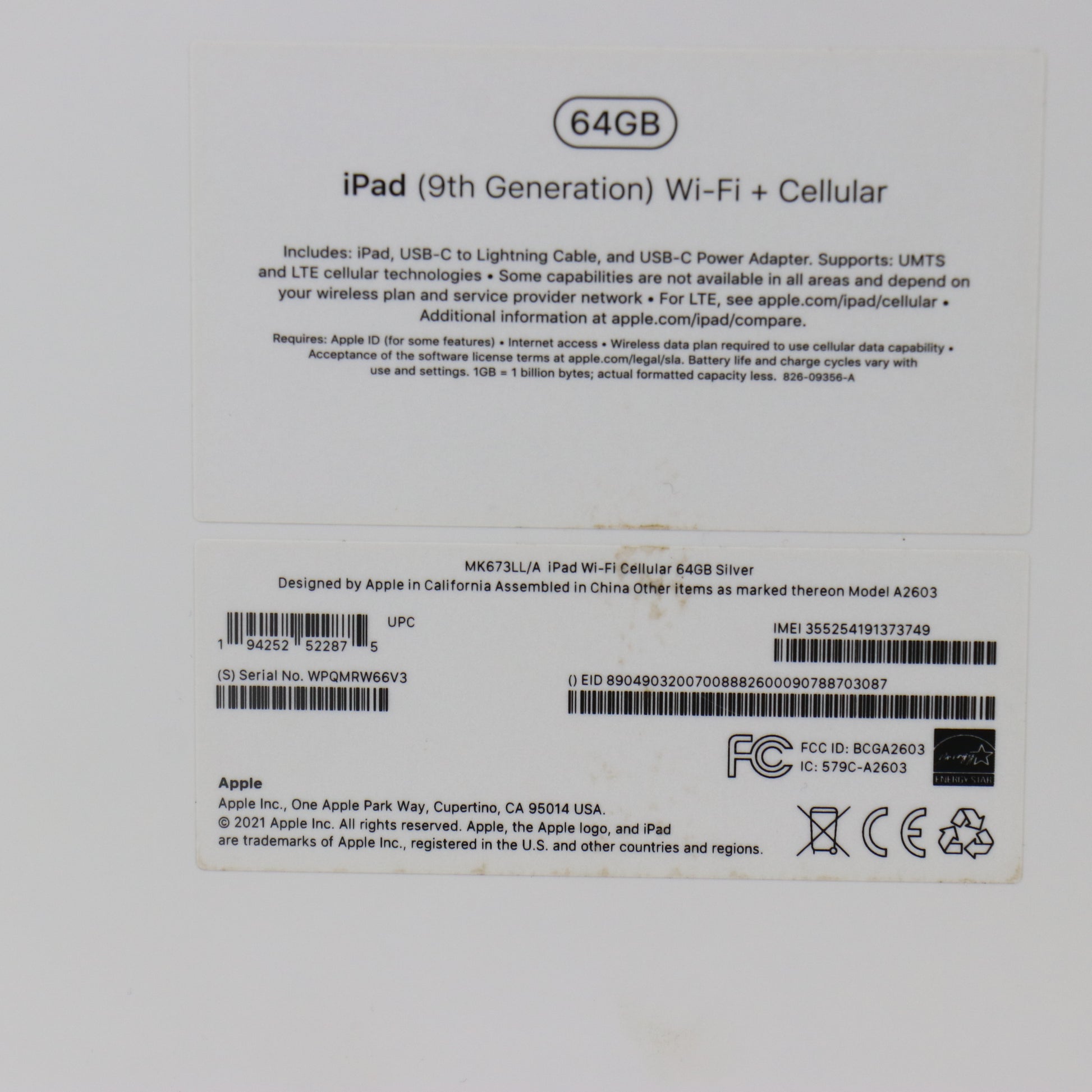 | Model | iPad 9th Gen